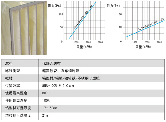 2.袋式造型,配以各種金屬外框,主要阻擋大顆粒塵埃粒子。